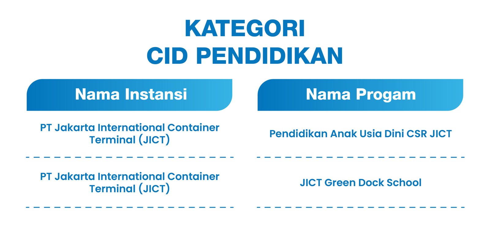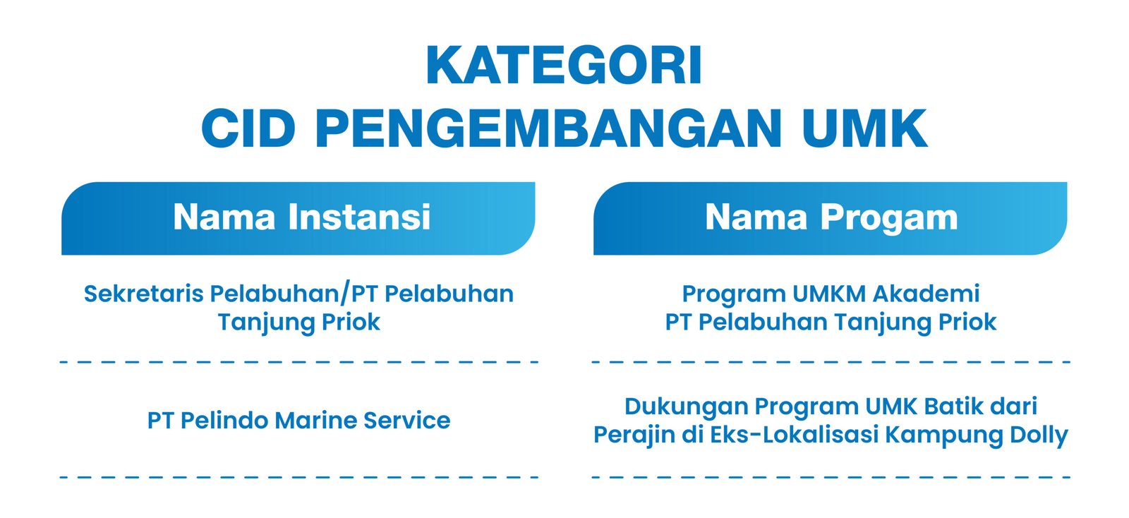 Ajang apresiasi Pelindo untuk inisiasi inovatif dan berdampak dalam keberlanjutan lingkungan, mendorong praktik hijau serta solusi kreatif untuk masa depan yang lebih baik untuk program CID yang memiliki: